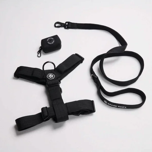 Set bestaande uit comfort control no pull hondentuig, Neopreen hondenlijn en poepzakjes houder.