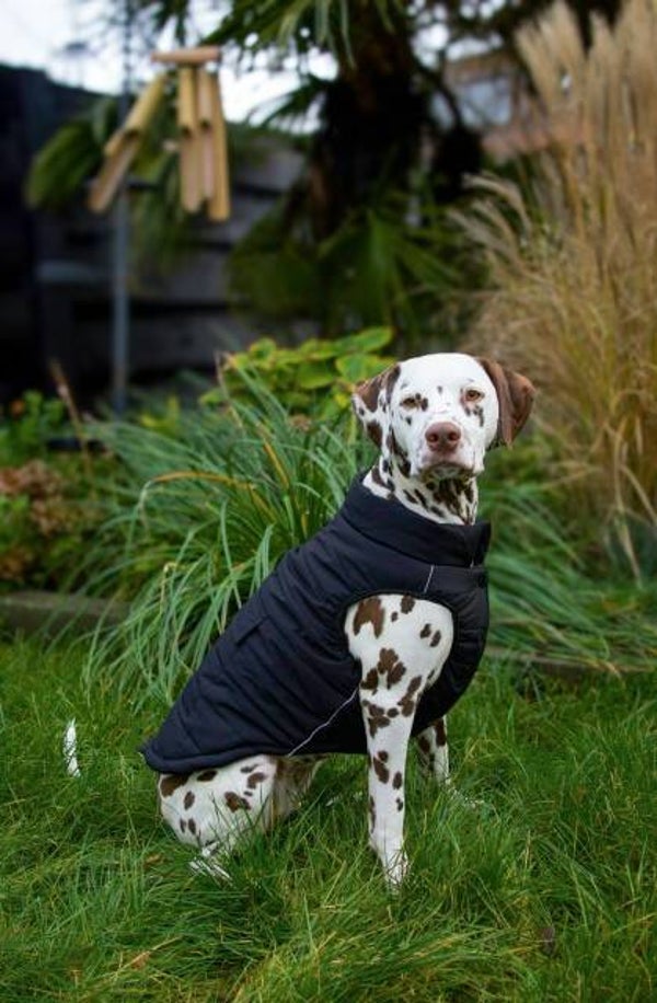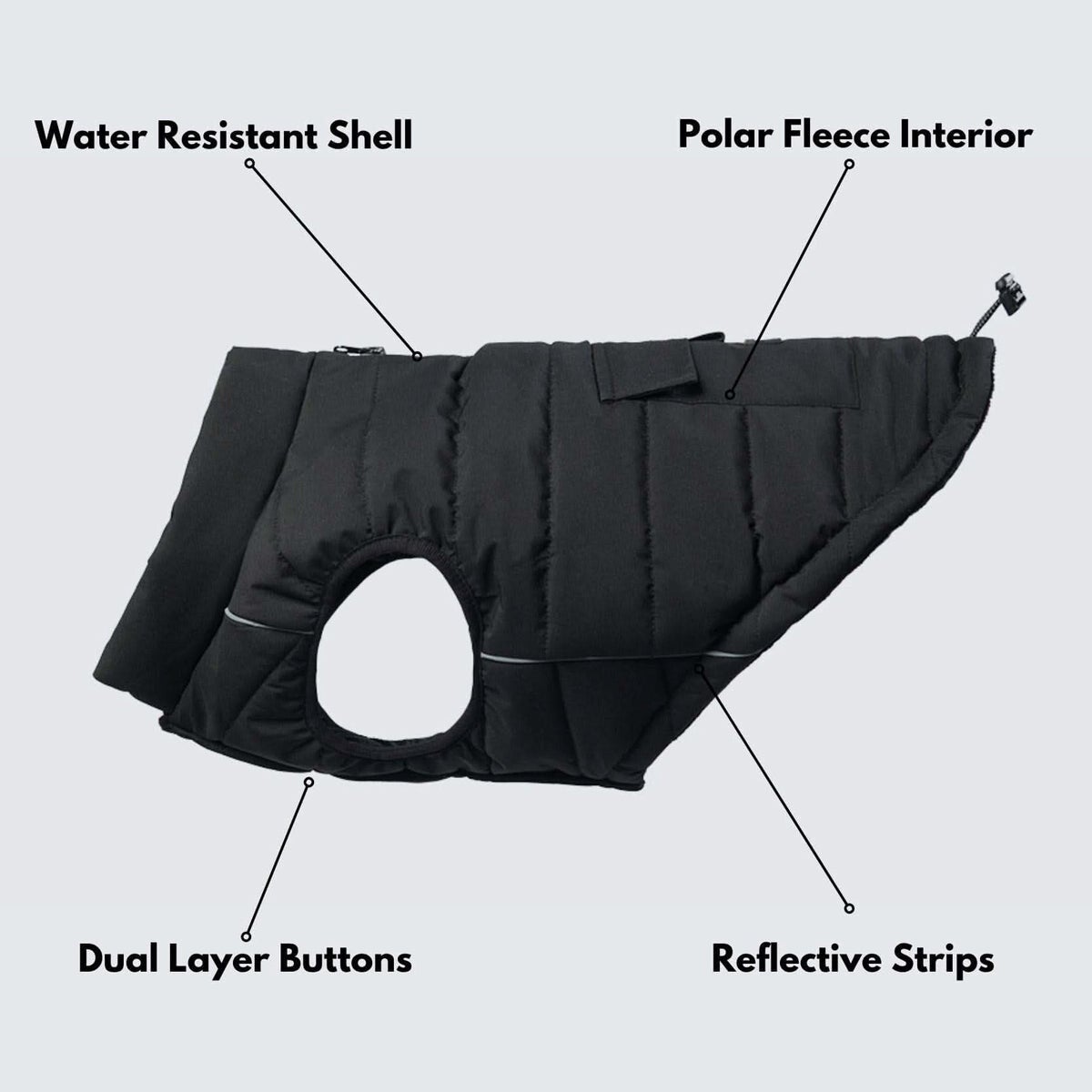 Deze gestroomlijnde parka geïnspireerd op technische kleding houdt je hond droog en warm op de koudste winterdagen.