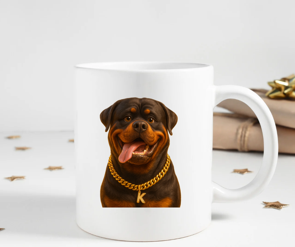 3. Jij ontvangt een standaard mok met jouw hond in de hoofdrol — uniek, stijlvol en met betekenis.