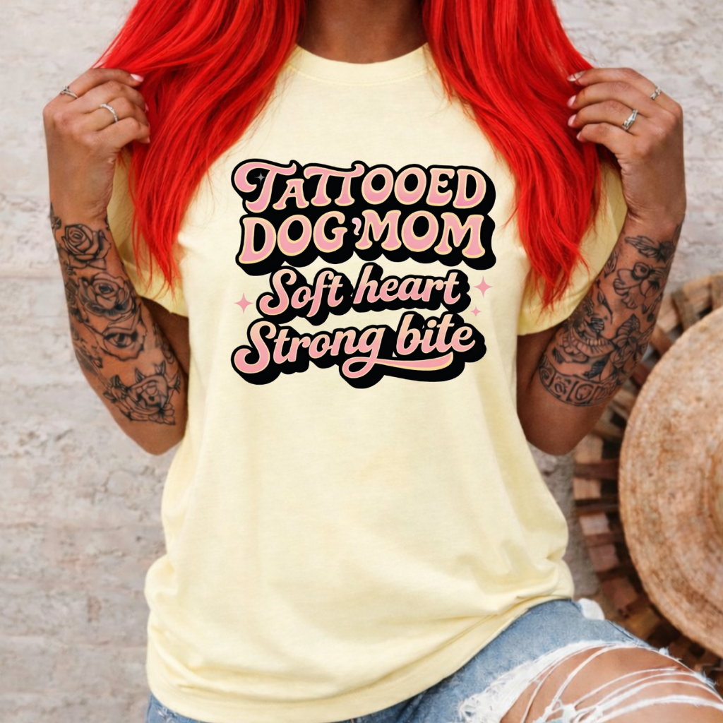 Tattooed Dogmom – Soft Heart Strong Bite staat voor kracht, loyaliteit en een groot hart voor je hond. Een statement piece met attitude en liefde in één.