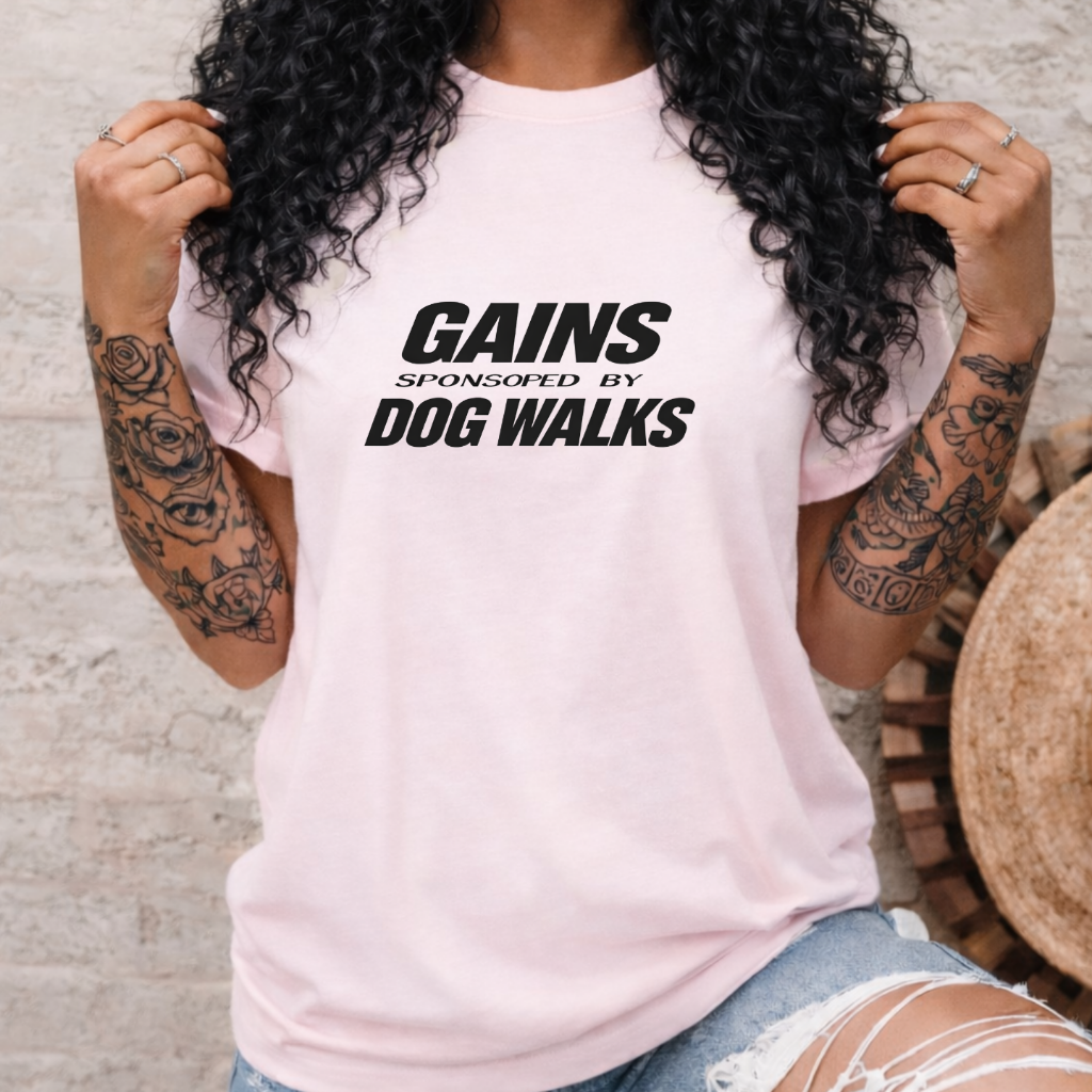 Gains Sponsored by Dog Walks is het perfecte statement voor actieve hondenmama’s die kilometers maken met hun beste vriend.