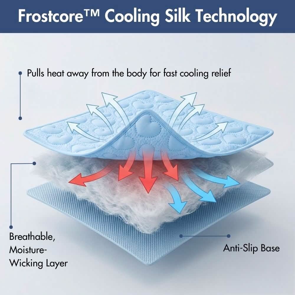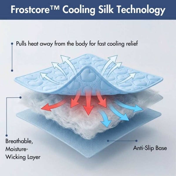 Gemaakt met Frostcore™ koelstof; het oppervlak onttrekt direct warmte bij contact voor een onmiddellijk, verfrissend koel gevoel – perfect voor warme zomerdagen.