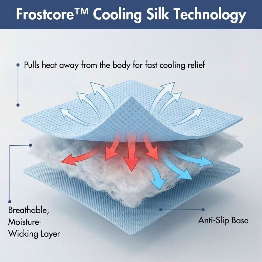 Gemaakt met Frostcore™ koelstof; het oppervlak onttrekt direct warmte bij contact voor een onmiddellijk, verfrissend koel gevoel – perfect voor warme zomerdagen.