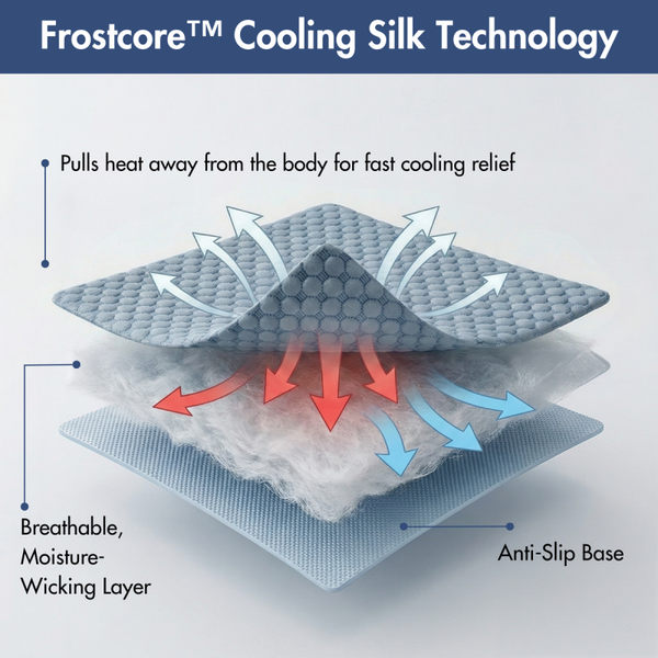 Gemaakt met Frostcore™ koelstof; het oppervlak onttrekt direct warmte bij contact voor een onmiddellijk, verfrissend koel gevoel – perfect voor warme zomerdagen.